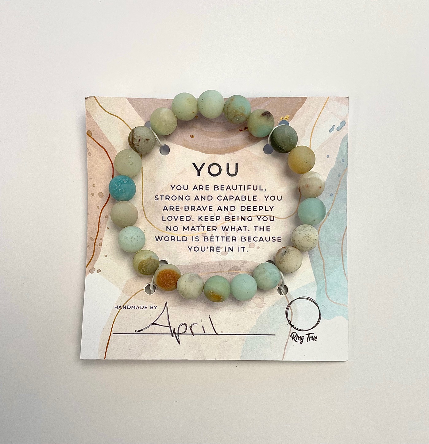 Bracelets come in a custom jewelry box that explains the mission of our company along with a hand-signed bracelet card from the survivor who worked on your bracelet. Whether you are keeping it for yourself, or giving it as a gift, the beautiful packaging serves as a great reminder that you are changing someone’s life through your purchase!